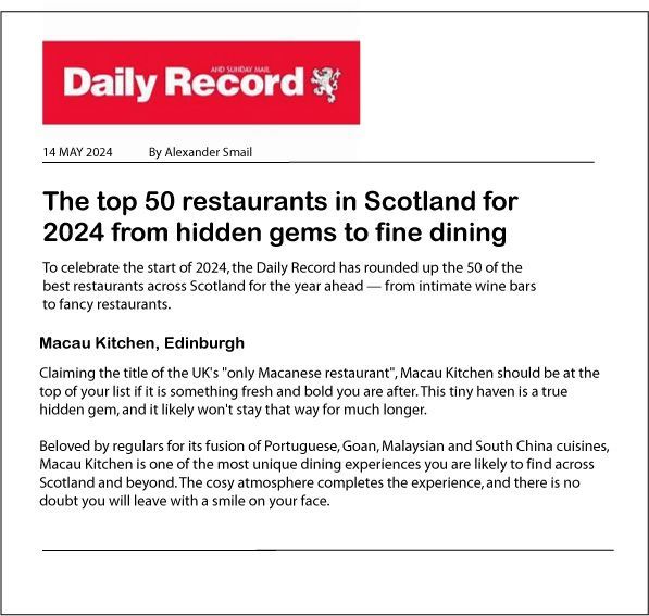 “The AA guide inspectors are adamant: "Macau Kitchen is a unique dining experience in the heart of Edinburgh". "This restaurant focuses on the 500-year-old gastronomic heritage of Macanese and Malacca Eurasian cuisine, following the route of Portuguese spices in Asia. The menu includes favourites from Macanese and Malacca Eurasian cuisine, and they also have a menu that changes daily with a creative menu from the chef based on the principles of cooking style and his personal journey in Macau and Malacca," they add.